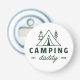 Camping daddy camper dad nature lovers father dark green forest mountain camp tent retro vintage style aesthetic funny Father’s Day birthday and Christmas gifts bottle opener fun button.