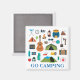 This magnet features a graphic of a wide variety of camping equipment and camping essentials. The background colour, and "Go Camping" text can be customised if desired.