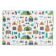 This pillowcase features colourful camping gear vector graphic icons, on both the front and back of the pillow. The background colour can be customised if desired.
