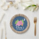 Camping girl Birthday party plates wood background