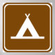 International style road and highway sign advising of recreational facilities, specifically: camping.