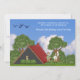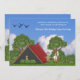A campout party is lots of fun. This terrific camp-themed invitation has all the elements to excite your guests from the moment they open the envelope - blue sky, a tent, geese flying up above, trees and woods and friends ready for adventure.