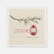 Paper napkins featuring an illustration of a red camping lantern hanging from an evergreen tree branch. Personalise the text. Look for matching invitations and other coordinating items at Jill's Paperie.