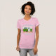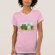 Little RV camper t-shirt with two lines of custom text. Curved text at the top is "Florida Keys" with "camping life" text beneath the design. A little green and white, retro RV is the design. Off-white lettering has aqua blue drop shadow to show on most colours. Shown on a pink tee with others to choose from. This shirt runs small, so order larger for a loose fit. Read more in the shirt description.