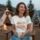 Camping Merry Christmas Reindeer Personalised Name T-shirt features the text "Merry Christmas" in a retro script typography with a festive decorated caravan being pulled by reindeer and accented with snowflakes and holly. Personalise with your custom name for a super gift. Perfect gift for family and friends for Christmas and the holidays. Designed by Evco Studio www.zazzle.com/store/evcostudio