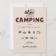 A simple, modern, elegant and chic 30th birthday party weekend invitation template with a camping theme, featuring red plaid on the title "camping", hand-drawn camping and outdoors icons (fire camp, marshmallows, tent, lamp etc.) with a modern, distressed texture. A lovely choice for a big birthday weekend of fun camping, hiking or anywhere outdoors with the girls, with family etc.