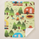 Camping scene - caravan, camping chairs, fire plac sherpa blanket