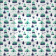 Navy blue and turquoise camping theme pattern.