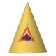Happy Camper Birthday Party Hats. Yellow paper birthday hats with camping tent to match your camp themed party decor. Cute party decor with whimsical design and bright colours. Matching items available. Coordinates with the Camping Adventure collection by Hopscotch Prints.