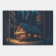 Tents, Campfires, log cabins and other camping themed graphics birthday gift wrap.