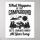 This funny camping camper lover saying mobile home rv design reads what happens at the campground gets laughed about all year long. It was created with love and you'll see a motorhome and a campervan.