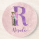 Campy Purple Shimmer Illustrated Letter R Coaster