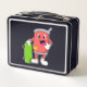 This is a standard metal lunchbox that appears to work just fine. We designed this box ourselves with an uploaded photo and custom text on the front and back. It looks absolutely beautiful except the front of the lunchbox is not centered like it shows in the photo. The print borders don't align with the inset flat part of the box where the preview photo online showed it perfectly centered in there. The back looks nice and centered though.
