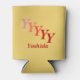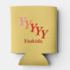 Initial and Name. Personalise by entering your Initial (replicates 5 times), and your name. Customise further by changing background colour (defaults to a dark yellow). Initial will show in five increasingly darker shades of pink and red from upper left to lower right. Name will be in darkest red.