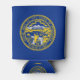 This can cooler pays tribute to Nebraska's rich cultural heritage and natural beauty, featuring elements reminiscent of its iconic flag. The design prominently displays a field of blue with the state seal centred, which includes symbols representing Nebraska's agriculture, pioneers, and the transcontinental railroad.