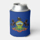 Crafted with precision and care, this can cooler isn't just a beverage accessory; it's a symbol of Pennsylvania's rich heritage and cultural identity. The striking design proudly showcases the flag of Pennsylvania, with its iconic blue field and the state coat of arms featuring a ship, plough, and three sheaves of wheat, representing the state's history and industries.