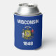 Crafted with precision and care, this can cooler isn't just a beverage accessory; it's a symbol of Wisconsin's rich heritage and cultural identity. The striking design proudly showcases the flag of Wisconsin, with its bold blue field and the state coat of arms featuring a sailor and miner, representing Wisconsin's historical roots and industries.