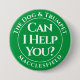 A badge for staff, saying "Can I Help You?" Change the wording to your details. Staff badge. Official badge in Green and White.