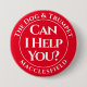 A badge for staff, saying "Can I Help You?" Change the wording to your details. Staff badge. Official badge in Red and White.