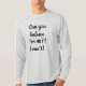 How about this cool light grey colour long-sleeved t-shirt that says ' Can you believe I'm 90?? I can't!' written in black cursive letters.