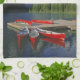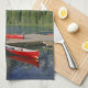 Canada, Alberta, Moraine Lake. Red canoes await Tea Towel