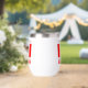 Personalised thermal wine tumbler featuring snow capped letters reading CANADA found underneath the Canadian Flag. Add your name to personalise the look or create a gift for Canada Day. The Canadian flag has a white centre with a red maple leaf inside. One the right and left of the white area are two red ones. Terrific for family reunions, travel groups, and clubs. Fun gift for any occasion or event. Design shows on two sides.