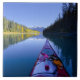 COPYRIGHT Gary Luhm / DanitaDelimont.com | CN02 GLU0070.jpg | Canada, British Columbia, Bowron Lakes Provincial Park. Bow of sea kayak on a broad stretch of the Caribou River, in autumn with fresh snow on the mountains.