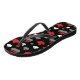Flip flops featuring a maple leaf and curling rock pattern in red, white and grey on black background. Perfect for curlers and curling fans.