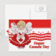 Canadian Angel Features wavy red waves and Mapleleaf background She holds a heart with a red Mapleleaf. Text says... Happy Canada Day