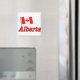 Big red letters spell out the Province name Alberta, with a wavy Canadian flag flying behind it. This design is available on a large assortment of t-shirts, gifts and other apparel.