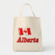 Big red letters spell out the Province name Alberta, with a wavy Canadian flag flying behind it. This design is available on a large assortment of t-shirts, gifts and other apparel.