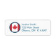 A bold and patriotic return label featuring the iconic red maple leaf centered between two vibrant red vertical bars. The circular layout gives the classic Canadian flag a modern, polished look, making it perfect for envelopes, packages, or small business branding. The bright red and crisp white design stands out clearly on any surface, giving your mail a professional touch with unmistakable Canadian pride. Ideal for personal or business use, especially for customers who want a simple yet stylish way to highlight their Canadian identity on every shipment.