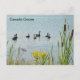 A digital painting of Canada Geese (Branta canadensis) swimming with cattails (Typha latifolia) and other vegetation in the foreground. Customisable text reading "Canada Goose" also appears.