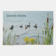 A digital painting of Canada Geese (Branta canadensis) swimming with cattails (Typha latifolia) and other vegetation in the foreground. Customisable text reading "Canada Goose" also appears.