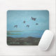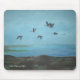 Scenic of Canada Geese flying over water painted in acrylc by Nikki Wharton-Eby.