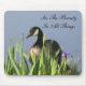 Lovely wild Canada Goose with purple irises inspirational mousepad reminding us to see the beauty in all things. Digital gouache style photo painting by Susan. Click on Customise to add text and change font size, style, and colour. This image is available on many products in my gallery. Please visit Smilin' Eyes Treasures to see more flower and nature photography and digital art cards and gifts.