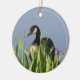 Lovely wild Canada goose with purple iris flowers nature ornament. Digital photo painting by Susan. Add your personal message on the back, or be sure to delete for plain back. If you would like the image on the back of the ornament as well, please contact me and I will be happy to create it for you. If you need help or have any requests, please contact me through Send Message on my homepage. This image is available on many products in my gallery.
