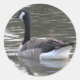 A beautiful photo of Canada Goose swimming away across a shimmering pond, including the reflection of light from the water.