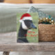 A whimsical holiday postcard that features the photo image of a Canada Goose wearing a red Santa hat and holly berry necklace. A fun, animal design for the holidays! You may customise your postcard by adding text to back of card, such as company name or family name. Select from matte or glossy style.