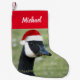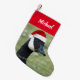 For the nature lover! Decorate your holiday home with this personalised Christmas stocking that features the whimsical photo image of a Canada Goose wearing a red Santa hat and holly berry necklace. Back side of stocking is red. Personalise your stocking by editing name. Select your stocking fabric style.