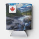 The National Flag of Canada often simply referred to as the Canadian flag, or unofficially as the Maple Leaf, consists of a red field with a white square at its center, in the middle of which is featured a stylized, red, 11-pointed maple leaf.