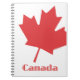 White spiral notebook with an oversized red maple leaf and Canada in red lettering.