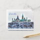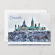 A great keepsake or souvenir postcard, the Canadian Parliament Buildings with lots of snow, as seen from across the Ottawa River in early spring, north shore of Gatineau (Hull) Quebec, Canada. The Parliament Buildings are the seat of the Federal government. The tall tower with clock face is the Peace Tower. A large part of these buildings, aka the Centre Block, burnt down in 1916 and were reconstructed in the Gothic Revival style, finishing with the Peace Tower in 1927. The round building with brown pointed roof is the Parliamentary Library, the only edifice that survived the blaze. The Library is done in Late Victorian style. The buildings are sandstone, and the big rock they're sitting on (Parliament Hill) is a limestone outcropping. The roofs of the buildings are copper - as time goes on they tarnish and become brown, then green. Usually there's some construction or cleaning going on but in this picture, taken in early spring of this year, you get a nice overall view of the structures without the scaffolds. The Ottawa River is open in the middle due to the current, but frozen towards shore. It forms the border between the two Canadian provinces Ontario and Quebec. This design is great as souvenir of Canada, for friends and family, a lovely view of an Ottawa landmark from the shores of French Canada ... eh, Quebec. Photo by M Sylvia Chaume, Quebec, Canada.
