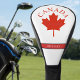 Red and white Canada golf head cover with Canadian flag and maple leaf. Customisable text. Great gift for golfing Canadians. Personalise it by adding your name.