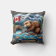 Canadian Beaver Building Dam Near Mountain Stream Cushion