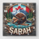 Canadian Beaver by Water With Mountains and Trees Square Wall Clock