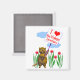 Magnet with my artwork of a beaver standing in front of flowers and holding a sign that says "I heart the Yukon Territory".