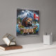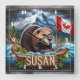 Canadian Beaver Near Water With Maple Leaf Flag Square Wall Clock