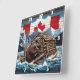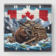 Canadian Beaver With Flag and Lodge in Nature Square Wall Clock
