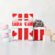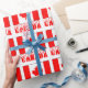 The Canadian Flag has two red stripes on each side of a white centre. The centre has a red maple leaf. In this design the flag shows with the word CANADA below the flag in snow capped red letters. Share your heritage with this gift wrapping paper.